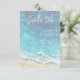 Este design da placa de salvamento apresenta uma cena de praia de aquarela de água e areia como um fundo ligeiramente mudo. Perfeito para o casamento de destino ou praia. Criada pela Simply Farmhouse Press, ela faz parte do pacote de cartas Modern Watercolor Beach & Water Wedding.