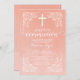 O nosso belo convite à comunidade sagrada de aquarelas modernas apresenta uma imagem de rolagem vintage, uma cruz branca e uma fonte de comunhão sagrada de rico chico sobre um fundo aquarela popular de pêssego de coral claro. sacudir nossa comunhão convidar para ver uma correspondência de volta para um toque especial extra. Convite perfeito para uma comunhão ou comunhão de meninos. Visite nosso compro para este convite em uma grande seleção de cores modernas e modernas.