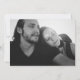 moderno convite Save the Date de casamento com caligrafia e colagem de fotos. Este cartão elegante inclui uma colagem de 3 fotos na frente e 1 no verso com texto e fundo personalizados.