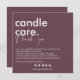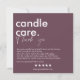 Eleve sua marca de vela com este na moda e cartão de visita funcional que dobra como guia de assistência a velas e obrigado que você nota. Apresentando um fundo de lavanda suave e uma tipografia branca limpa, esta placa oferece instruções essenciais de cuidado com velas e, ao mesmo tempo, exprime uma profunda apreciação aos seus clientes. Projetado para fabricantes modernos e pequenas empresas, ele inclui dicas para uso seguro e ideal da vela, um lembrete suave para manter as velas longe das crianças e dos animais de estimação e um aviso para o feedback dos clientes. O layout elegante e a estética minimalista o tornam uma inserção perfeita para o empacotamento ou pop.