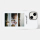 Capa de telefone moderna apresentando um design preto e branco simples e mínimo com uma colagem de fotos de quatro de suas fotos favoritas junto com seu nome em um roteiro elegante.