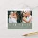 Anuncie a data do seu casamento com este cartão postal de "save the date" de foto elegante e moderno. O design apresenta duas das suas fotos de noivado favoritas com "Save the Date" exibido abaixo em fontes serifadas brancas e em script sobre um fundo verde sage. Personalize a frente dos anúncios minimalistas de "save the date" adicionando seus nomes, data e local do casamento. O cartão postal "save the date" se inverte para exibir seu endereço de retorno e detalhes do casamento. O anúncio simples de "save the date" é perfeito para qualquer tema de casamento.