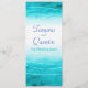 Belo mar azul pintado com ondas gráficas no menu de janto de casamento da camada de ondas brilhantes. Uma bela praia, oceano costeiro inspirado, contemporâneo, cardápio de casamento com um único e estilizado mar com aquarela manual, em um papel branco. Perfeito para uma praia moderna ou um casamento náutico. Edite este menu de jantar com suas próprias palavras. Único projetado e pintado por Sarah Trett.