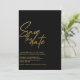 Preto E Dourado Moderno Salve O Convite De Data. É um convite de casamento do tema Moderno lindo e único. Este convite apresenta um belo padrão de ouro com tipografia elegante sobre fundo preto simples. Personalize todo o texto deste cartão. Você pode personalizá-lo pressionando o botão (Personalizar). Se quiser personalizá-lo mais, vá para a opção (Clique para personalizar mais). Dimensão: 5" x 7", Personalizável: Sim, Crie o seu próprio. —DMG A PERFECÇÃO —