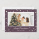 Cartão de Natal roxo e personalizado moderno, com estrelas sobre fundo roxo. Personalize facilmente este elegante cartão de Natal roxo com a sua imagem favorita, um nome de família e texto.