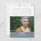 Exprimir gratidão a todos que vieram ao seu lado durante os seus momentos mais difíceis de luto é uma bela maneira de honrar aquele que você perdeu. Esse cartões de agradecimentos azul/cinza e branco moderno e elegante pode ser facilmente personalizado com suas próprias informações. Altere o sentimento se desejar ou use o que já foi fornecido. Lembrar-se daqueles que estiveram ao seu lado durante uma temporada de luto ajuda o coração a curar e demonstra respeito ao precioso amado que você perdeu. A coleção Modern Soft Blue/Cinza Remembrance tem essas cartas de agradecimento e outros produtos memoriais disponíveis para ajudar a facilitar esse tempo.
