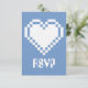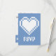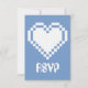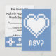 Esta placa RSVP engraçada e geeky apresenta um fundo azul de periwinkle e um grande coração de 8 bits em branco na frente. Uma borda de travamento ao longo da borda inferior da placa com um padrão de ícones relacionados a jogos brancos, incluindo joysticks, D-pads, mouse de computador e corações de pixel, decora o verso com algum texto de exemplo no lugar acima que pode ser personalizado para ajustado de suas necessidades. Verifique os outros produtos no Modo Multijogador no Conjunto Periwinkle para criar uma pesquisa verdadeiramente coordenada do seu evento.