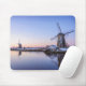 Mousepad de um nascer do sol sobre os moinhos de vento de Kinderdijk nos Países Baixos no inverno com alguns neve e gelo na água.