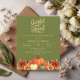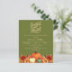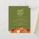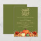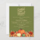 Um fundo de cor verde-musgo. Decorado com abóboras e flores laranja e amarelas. Personalize e adicione os detalhes da festa. Script de texto: Grateful e abençoado. 1 folha = 1 convite impresso de borda a borda.