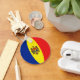 A bandeira da Moldávia foi perfeitamente adaptada à FOB circular desta chaveiro. Um belo lembrete do patrimônio moldavo.