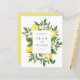 Faça seu anúncio de casamento tão fresco e vibrante quanto sua história de amor com este cartão personalizável "Salve a Data", com um belo design de limões de aquarela e uma bela imagem verde. Perfeito para um casamento de primavera ou verão, os brilhantes sotaques cítricos e folhetos trazem uma vibração natural e alegre para o seu encontro. Personalize-o com seus nomes, data de casamento e quaisquer outros detalhes que você gostaria de compartilhar. Quer você esteja planejando uma celebração de jardim, rústica ou temática tropical, este cartão adiciona um toque divertido, mas elegante aos seus preparativos de casamento!