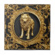 Uma imagem impressionante que apresenta um lobo negro contra um quadro decorativo de ouro luxuoso, evocando um senso de mística e poder. O contraste entre o pelo elegante e dourado do lobo e os detalhes intrincados e elegantes da moldura cria uma composição visualmente cativante.
