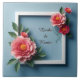 Design floral vibrante com flores rosas e folhas verdes emoldurando um centro preto em um fundo azul. Perfeito para decoração, convites ou projetos artísticos.