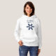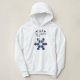 Hoodie- "20XX Hello Winter Holiday", a inscrição e "Joy! Amor! Paz!" Padrão de Floco de Neve. Feliz Natal e Feliz ano novo! Hoodie XMAS decorado com símbolos mágicos de Natal, o padrão dos elementos do Winter Holiday, o boneco de neve, o Gingerpão Men, a árvore de natal, a bola de natal, a rena, os flocos de neve, as estrelas de natal e mais personagens festivos - cor azul Enfeites de natal. Design de gráfico de tendência original. Vestuário e Calçados > Mulheres > Vestuário > Tops e T-Shirts > T-Shirts de uso feminino. Decoração do Natal. Design com modelo de texto. Personalize-os adicionando nome. Condecoração gráfica de dois lados.