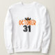31 de outubro de 2013, suéter de Halloween A família moderna que combina com a camisa de Halloween, mostra o texto "Witch Be Crazy Halloween" em letras laranja e brancas com um pequeno sotaque fantasma. Encomenda cada membro da sua tripulação.