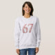 Jump on the viral "67" trend with this unique Sweatshirt that perfectly blends a popular internet meme with a romantic aesthetic! The number "67", known as the Gen Alpha slang/meme often pronounced as "six-seven," is beautifully decorated with cascading pink and white hearts in an elegant script. This design is ideal for anyone who is "in" on the joke and loves social media trends, but wants a stylish, cute, and aesthetic look rather than a basic text design. The striking red color makes it perfect for Valentine's Day, a gift for a trendy teen, or just to show off your internet knowledge with a sweet, playful vibe. Get the trending tee that has everyone shouting "67!"