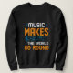 A música faz o mundo girar em laranja e azul em preto. Faz um presente de excelente para cantores e músicos ou qualquer outra pessoa que realmente ama música!