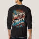 A design da camiseta "Promessa da Liberdade" apresenta uma poderosa e eterno representação da Estátua da Liberdade, de pé em alto contra um pano de fundo da bandeira americana. A tocha dela está em chamas, simbolizando esperança e liberdade, enquanto raios sutis de luz emanam de trás, reforçando a natureza duradoura da liberdade. Abaixo da imagem, a frase "Promessas da Liberdade" é escrita com ousadia em uma letra elegante, representando o compromisso inabalável com a liberdade e a democracia. O design equilibra o patriotismo com um talento moderno, fazer-o de uma notável declaração de resiliência e unidade.