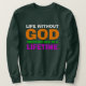 A vida sem Deus encurta a vida a uma vida. Esta citação cristã fala da vida eterna e de uma relação com o Deus criador. Excelente de presente para um amigo devoto ou membro da família, especialmente um nascer novamente cristão. Esta camisa colorida e comprida de manga é também uma ideia excelente para um pregador, pastor ou qualquer crente que tenha dado suas vidas a Jesus Cristo.