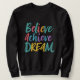 O design da camiseta apresenta a inspiradora frase "Acredite no Sonho" em uma fonte vibrante e multicolorida. O texto é corajoso e revelador, colocando-se contra um fundo minimalista. A design transmite uma mensagem de esperança, determinação e aspiração, encorajando os usuários a colocar seus olhos altos e perseguir seus sonhos com paixão.