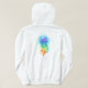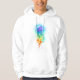 Água-viva grande, iridescente, desenhada artisticamente, brilhante, com longos tentáculos em branco, pintada sobre fundo de aquarela multicolorido. Água-viva arco-íris.