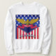 Esta design exibe a bandeira dos Estados Unidos com uma águia-calva-dourada e as palavras Alabama em um texto de gradiente azul e branco. Perfeito por mostrar seu orgulho no estado do Alabama.