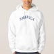 A AMÉRICA em uma fonte única é impressa em azul-denim nesta camiseta de capuz. Escolha a cor da sua camisola entre os disponíveis.