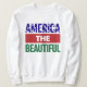 Patriotic typography design featuring the words "America The Beautiful" with star and topographical map textures.