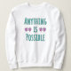 A charming and uplifting design featuring the inspirational phrase "Anything is Possible" in soft light teal, accented with two sets of delicate pink hearts to spread positivity and love.