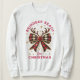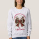 Ponha seu espírito natalício em frente com esta camisola festiva de Natal com um arco na moda em um padrão de xadrez vermelho, ouro e preto de Buffalo, tocada com chifres de renas brincalhão. Espalhados por todo o design estão imergindo estrelas de ouro e flocos de neve, adicionando um toque de magia à estação. O texto vermelho ousado, "Reindeer Ready for Christmas" (Pronta para o Natal), captura a diversão e o entusiasmo das festividades de Natal. Esta design traz uma vibração acolhedora, mas chique às suas celebrações de Natal.