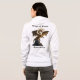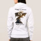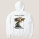 Um dragão de ouro feroz a crescer com a lua de cheio no fundo. Um slogan "Asas de poder, coração de fogo" rodeia a imagem. Um capuz excelente para um homem ou uma mulher que gosta de fantasia. Contém conteúdo generativo.