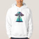 Gráfico de Alien e OVNI para aqueles que se interessam por Ufologia. Um alienígena fofo sendo transportado de um OVNI.