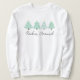 Esta camisola adorável apresenta quatro árvores de Natal pastel, de aquarela, e diz "rockin' round" (você pode mudar de dizer). Funciona melhor em opções de impressão brancas ou vívidas.