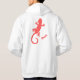 On the back of your hoodie is a large red gecko. Along with it, your name is displayed at a 30-degree angle. On the front left, there's a smaller gecko and your name.