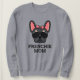 Esta camisola de Bulldog francesa faz o presente perfeito para Dia de as mães e aniversários. É ideal para dar a uma mãe de cão do seu amado francês. A design apresenta uma ilustração do rosto do Bulldog Francês preto e bronzeado com espaço para adicionar sua própria redação.