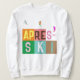 Design de esqui moderno, après-ski, em blocos coloridos e letras coloridas. Abertura de esqui alpino, estância de esqui, design de esqui. Um maravilhoso presente esportivo de inverno para um esquiador no seu círculo de amigos, colegas de trabalho ou família. Design de trabalho de arte de esquiadores retrô. Esquiadores esquiando decoração de esqui, equipe de esqui, presente de treinador de esqui.