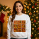 "CHRISTMAS" foi soletrado com blocos de brinquedos de madeira ilustrados e com temas natalinos: Cana doce, Holly, Reindeer, Ivy, Stocking, Árvore, Mistura, Angel e Snowman.