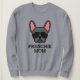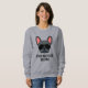 Esta camisola de Bulldog francesa faz o presente perfeito para Dia de as mães e aniversários. É ideal para dar a uma mãe de cão do seu amado francês. O design apresenta uma ilustração azul do rosto do Bulldog Francês com espaço para adicionar seu próprio texto.
