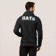 Um blusão de fleece sem manga com LOVE na frente e HATE nas costas.