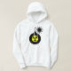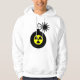 Uma representação gráfica dos perigos da energia nuclear. Uma bomba com um fusível iluminado queimando para o apocalipse nuclear.
