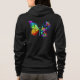 Arco-íris, borboleta monarca luminosa, pintada artisticamente com buquê de rosas iridescentes, brilhantes e luminescentes sobre fundo preto. Borboleta-arco-íris.