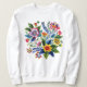 Pretty faux yard embroidery bright flowers wildflowers design on this sweatshirt. Available in many colors and sizes.