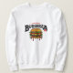 Uma design de camiseta divertida com um hambúrguer vibrante, estilo cartoon, com coroa, misturando humor com floco de comida rápida, intitulado "Burgerza".