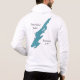 A pair of loons on the lake with a sunset in behind the and cattails on either side of them. On the back is a map of Butterfield Lake Redwood N.Y.