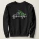 Caminhão de colheita de safras arrastando uma neve coberta de árvore de Natal, xadrez de búfalos em branco e preto. Arte digital original criada pela Cherie Art(c) 2020