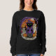 Entre no espírito do Dia das Bruxas com esta camisola fofinha e assustadora, com um gato-bruxa preto cercado por abóboras, fantasmas, morcegos e uma lua brilhante. O design de desenho detalhado captura a magia do Halloween com tons roxos, roxos e pretos lúdicos. Perfeito para amantes de gatos, festas de Halloween, ou noites confortáveis de outono, esta camisola faz uma roupa ou presente sazonal festiva e divertida.