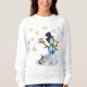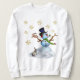 Suéter Snowman feminino com boneco de neve, pássaro, flocos de neve e coelho.