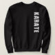 A camisola preta da arte marcial com karaté imprimiu verticalmente no branco.