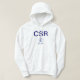 Esta camisola encapuçado caracteriza o logotipo do título do "CSR", da tocha de CSC da "estrela e" e o ano que o CSR estêve estabelecido. Excelente para manter-se morno naquelas noites frias no CSR.