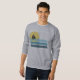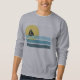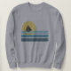 Esta camisola caracteriza um barco de vela na navigação da água na frente do sol. Tem sensação moderna/retro distintiva do meio século.
